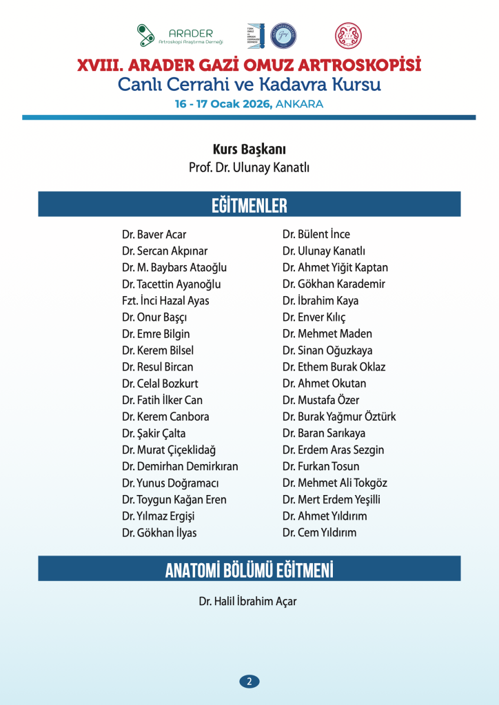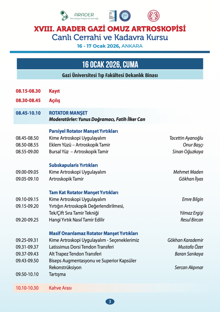 XVIII. ARADER GAZİ OMUZ ARTROSKOPİSİ Canlı Cerrahi ve Kadavra Kursu